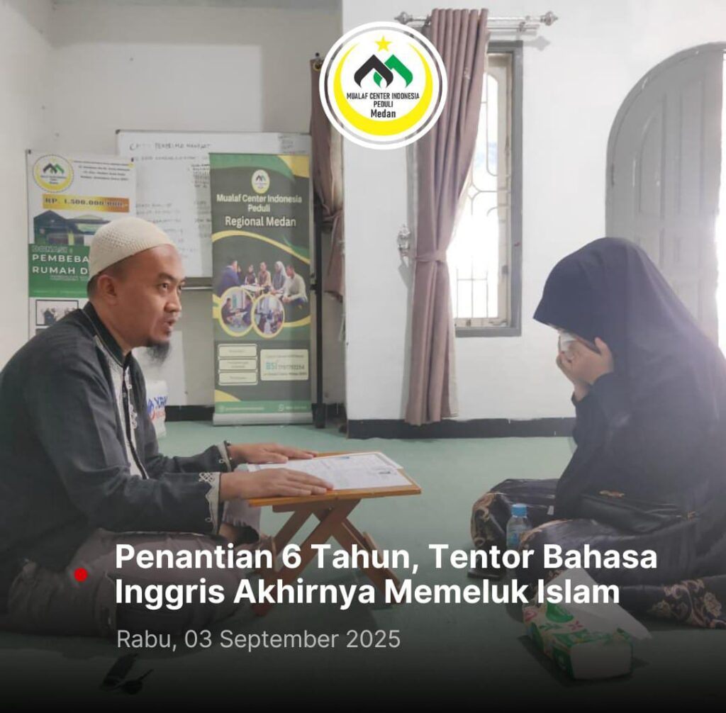Rabu (03/09) Mualaf Center Indonesia Peduli Medan, kedatangan seorang wanita berusia 26 tahun, keturunan Tionghoa yang ingin dibantu untuk memeluk agama Islam. Tampilannya sudah sangat syar’i, terlihat memang sudah Islam sejak lama.